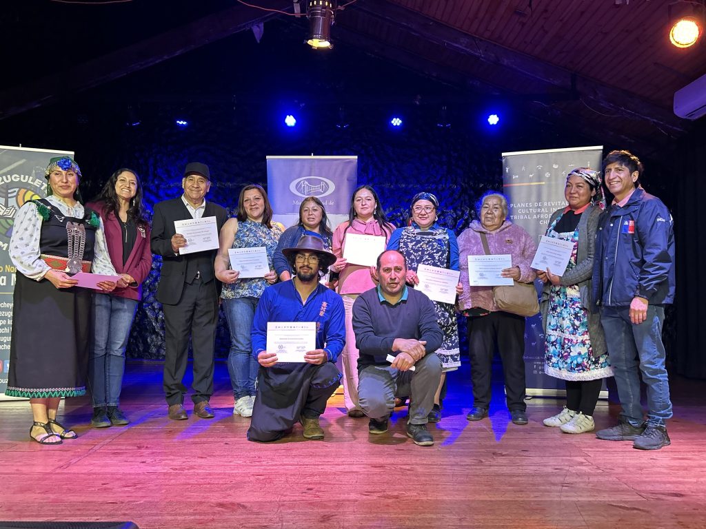 En el Centro Cultural de Carahue se llevó a cabo la ceremonia de certificación de los Planes de Revitalización Lingüística del Mapuzungun, instancia que comenzó con un llellipun de agradecimiento por los saberes adquiridos durante el proceso formativo.