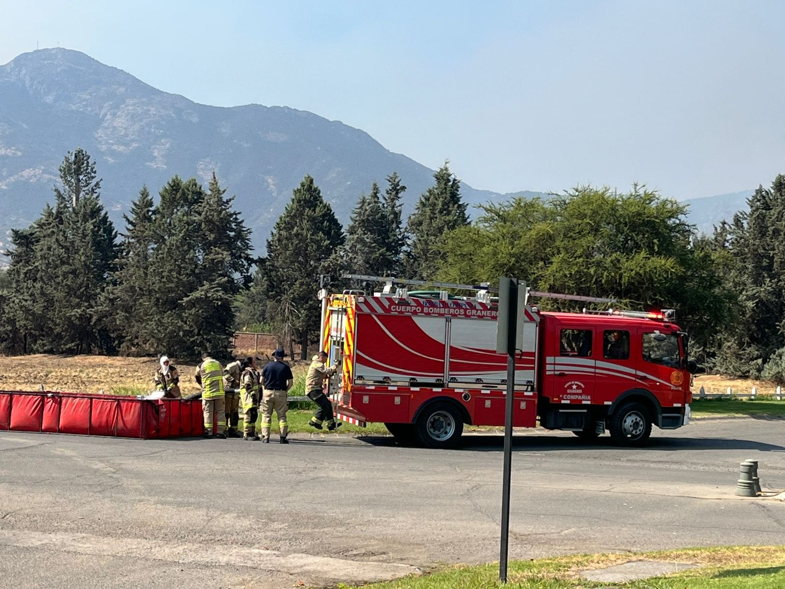 Se informó, además, que para controlar el incendio Bomberos dio la Segunda alarma de incendio forestal, trabajando en el control de la emergencia la totalidad del Cuerpo de Bomberos de Mostazal, con el apoyo de voluntarios de Paine, Graneros y Rancagua.