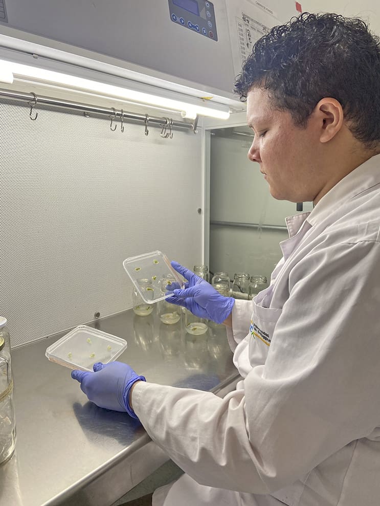 El desarrollo de estos trabajos se apoya en herramientas de frontera como la edición génica CRISPR/Cas9, combinada con plataformas robustas de cultivo de tejidos e in vitro. “CRISPR permite intervenir de manera precisa y dirigida, generando líneas donde el gen regulador pierde función, mientras que el cultivo de tejidos es el soporte experimental que asegura plantas homogéneas, reproducibles y comparables para evaluaciones fisiológicas, moleculares y bioquímicas”, explica Álvarez.