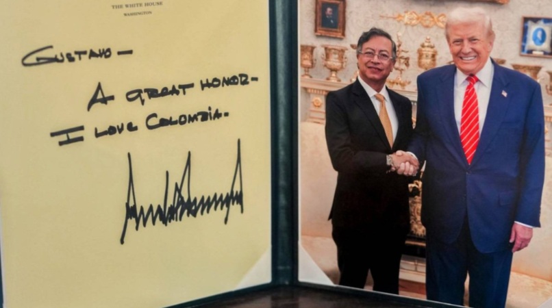 Gustavo Petro reveló en redes sociales los regalos que —según contó— recibió de Donald Trump luego de una reunión de aproximadamente dos horas en la Casa Blanca. Entre ellos, mostró una tarjeta con una dedicatoria dirigida a él y una fotografía de ambos posando.