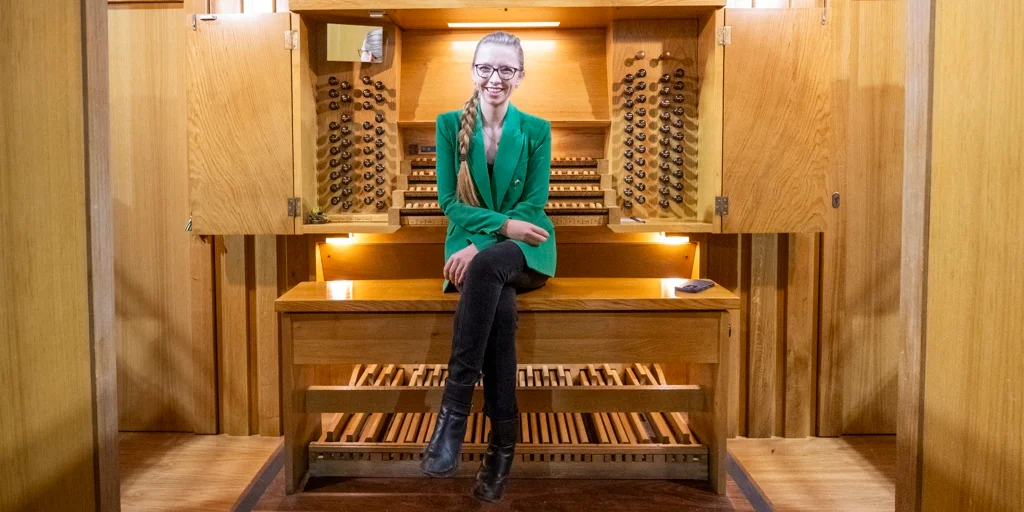Para Lapwood, el órgano de esta sala tiene tanto carácter que tocarlo es como hacer música con un ser vivo. Su asombro por él no cambia por mucho que pasen los años. La determinación que tuvo por este instrumento fue todo lo contrario a un flechazo. A pesar de haber estudiado arpa y estar convencida de que sería arpista, su madre le propuso tocar el órgano. «Pensé ‘no seas ridícula, el órgano es una tontería’, por qué iba a tocarlo jamás, pero entonces me dijo que si conseguía una beca en Oxford o Cambridge como organista, a los becarios les daban un piano de cola en su habitación, así que cambió de opinión. Me resultó realmente muy difícil y no podía tocarlo, y creo que eso me motivó mucho a querer descubrir cómo tocarlo, y ahora es mi vida»confiesa.