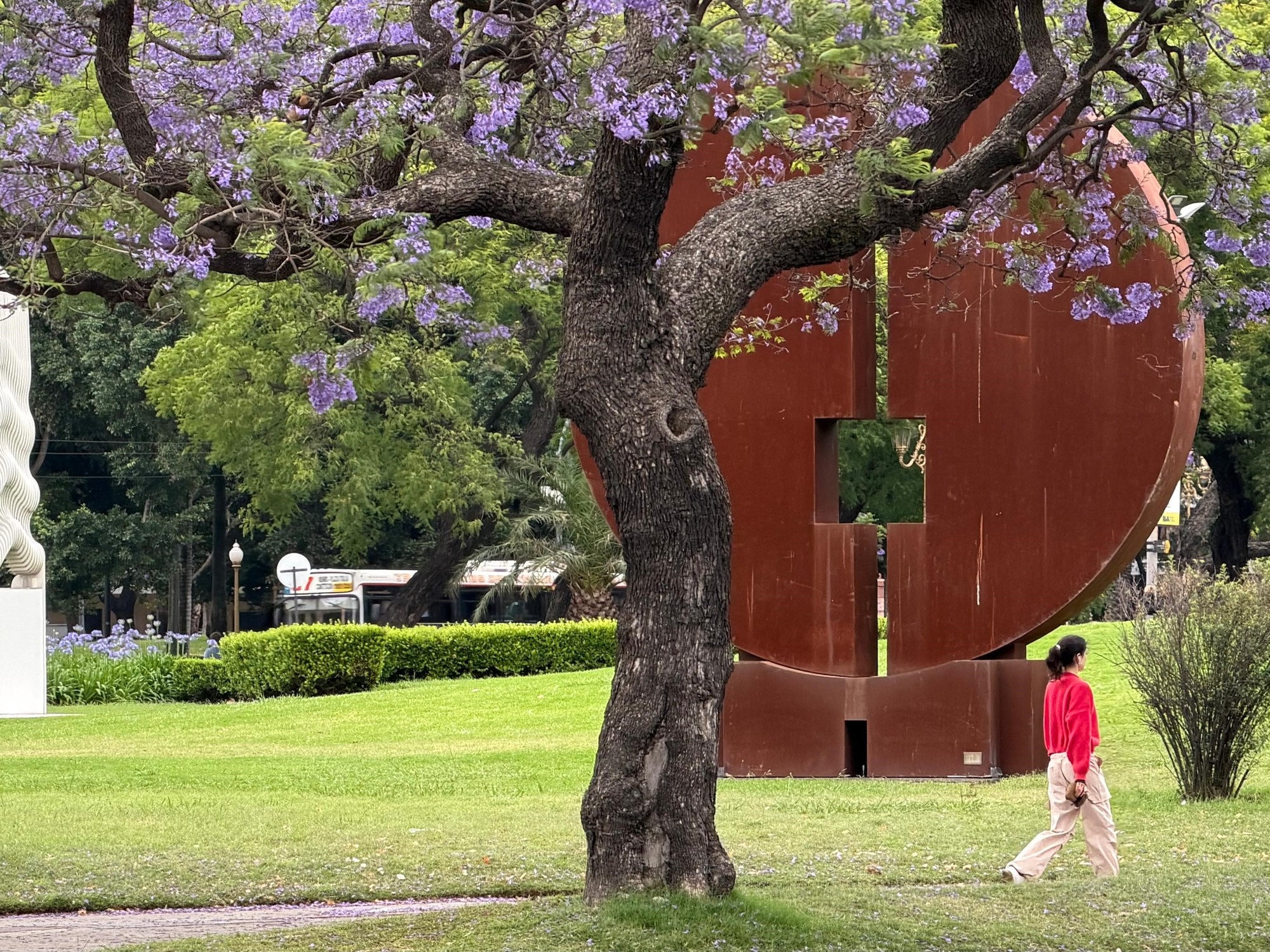 De casi seis metros de altura, “Aube” (1977–2018), que significa amanecer, está ubicada sobre la plaza Rubén Daríoen la esquina de Figueroa Alcorta y Pueyrredón.