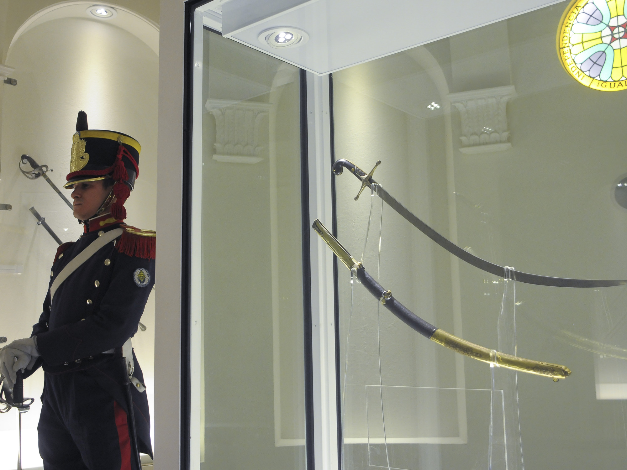 Cualquier intento de tocar o mover la vitrina sin aviso activará una alarma inmediata conectada con las fuerzas federales.. Las medidas de seguridad se activaron por orden de la anterior presidenta Cristina Fernández cuando decidió que volviera al museo, tras muchos años en el Regimiento de Granaderos.