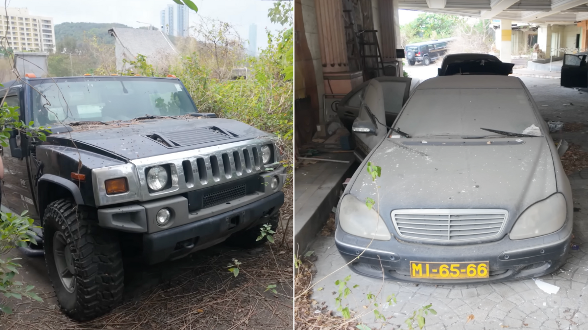 Durante la incursión, el primer vehículo identificado fue una Hummer H2 Stretch Limo, una versión limusina del SUV producida por Hummer entre 2002 y 2009. Este tipo de modificación implica cortar la carrocería y extender el chasis para agregar un compartimento adicional para pasajeros. La unidad presentaba una de sus puertas traseras abiertas, lo que permitió acceder al interior y constatar su deterioro.