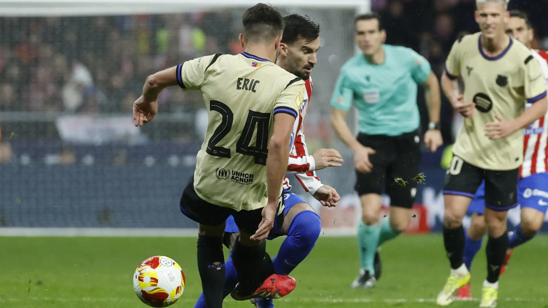 el Atlético de Madrid endosó un severo correctivo (4-0) al FC Barcelona en la ida de semifinales de la Copa del Rey. A pesar de la abultada goleada, los culés protestaron algunas acciones polémicascomo un gol anulado a Cubarsí por fuera de juego y la expulsión, en los minutos finales, de Eric Garcíaincrédulo tras el partido.