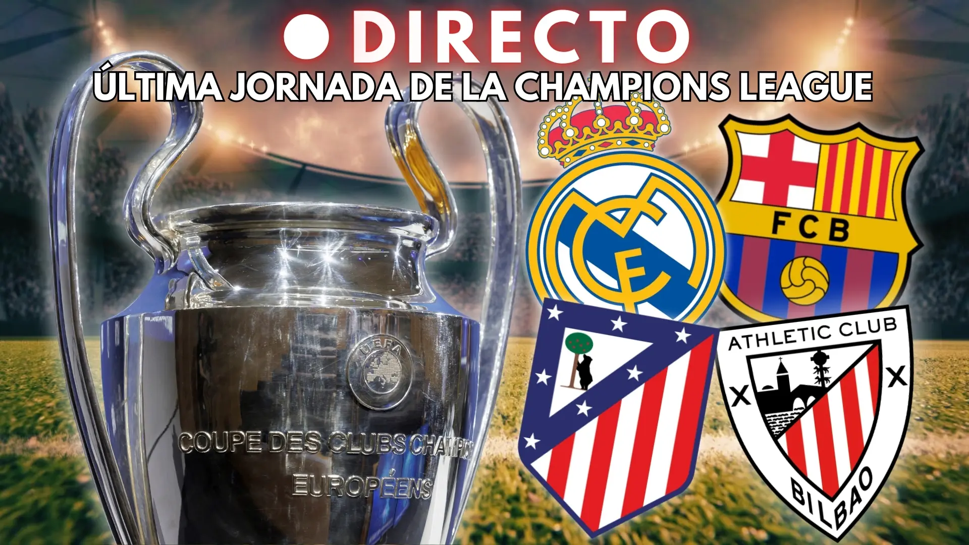 La Última jornada de la fase liga de la Champions League. llega este martes (a partir de las 21.00 horas) con 18 partidos de manera simultánea y el top-8 de la clasificación, que da acceso directo a los octavos de final, todavía por decidir: el Real Madrid es, de los equipos españoles, el único que tiene prácticamente atada su presencia en lo alto de la tabla, mientras que el Barça está muy cerca de entrar; el Atlético de Madrid, por su parte, aún tiene opciones, aunque no depende sí mismo, mientras que el Athletic tratará de meterse en los playoffs; el Villarreal, por otro lado, ya está eliminado.