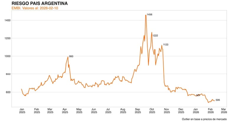 A principios de enero de 2025, el riesgo país supo tocar los 559 puntos y el S&P Merval alcanzó los u$s 2400.