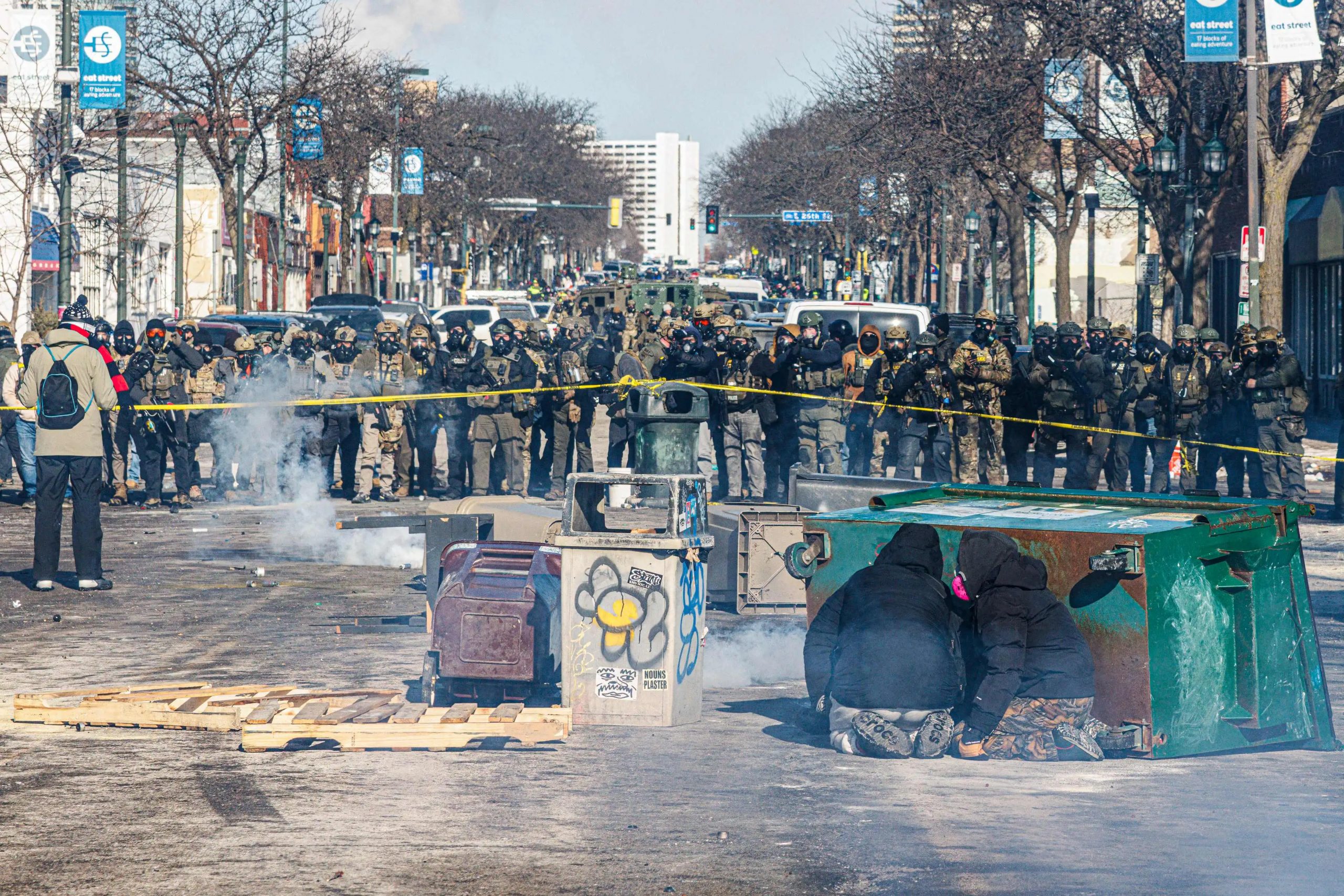 Agentes federales de #EEUU se enfrenta a ciudadanos con gases lacrimógenos y granadas de humo tras el asesinato de un ciudadano estadunidense de 37 años por parte de agentes del #HIELO es #Mineápolis.