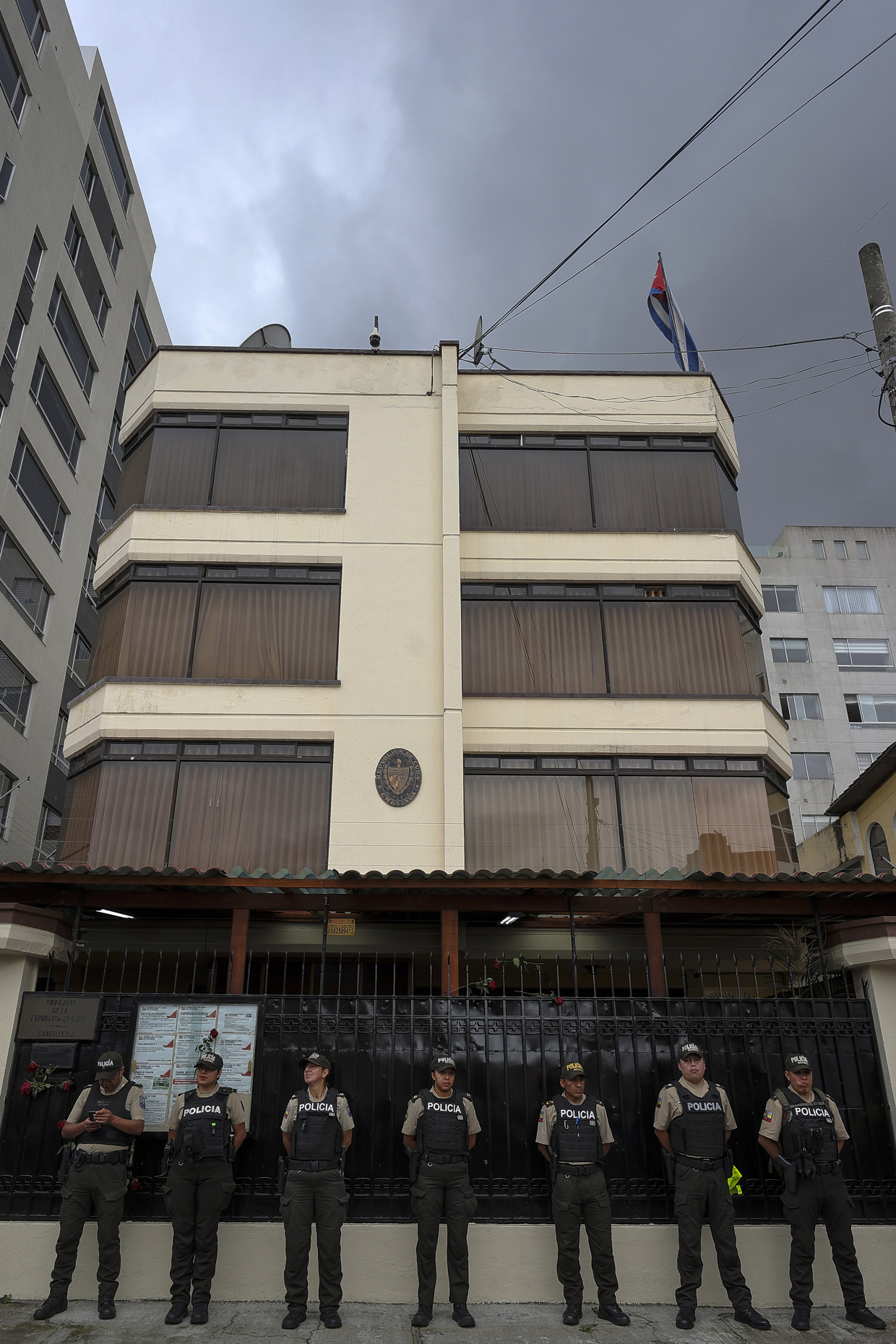 Efectivos de la Policía de Ecuador custodiaron la Embajada de Cuba en Quito el pasado jueves. Foto: EFE/ José Jácome.