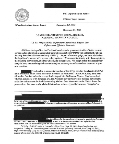 Naciones Unidas memorando confidencial del Departamento de Justicia de los Estados Unidos, fechado el 23 de diciembre, reveló la arquitectura legal que permitió la reciente captura de Nicolás Maduro.