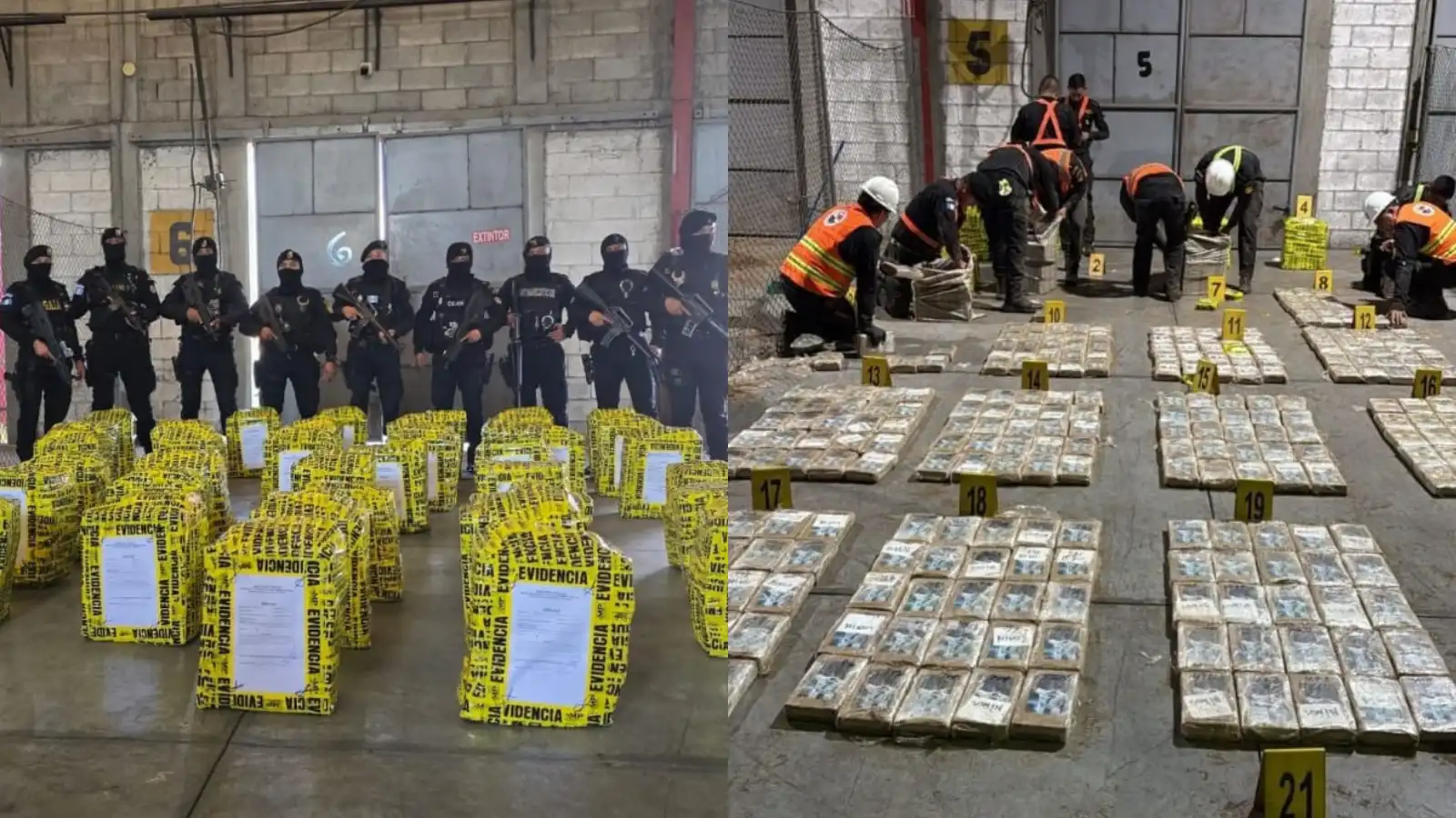 En una operación conjunta contra el narcotráfico, agentes de la Subdirección General de Análisis de Información Antinarcótica (SGAIA) de la Policía Nacional Civil (PNC), en coordinación con el Ministerio Público, localizaron e incautaron 1 mil 039 paquetes rectangulares con posible cocaína. El hallazgo se produjo tras la inspección de dos contenedores en Puerto Quetzal, Escuintla, donde la droga estaba oculta entre sacos de harina de coquillo.