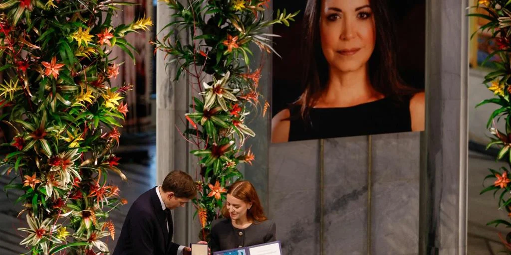 La ceremonia estuvo marcada por la incertidumbre: hasta el último momento no se sabía si el líder del movimiento democrático venezolano asistiría. Prometió salir de la clandestinidad —más de un año y medio escondida dentro de su propio país—, pero finalmente canceló su presencia física al evento. No así su presencia simbólica, que lo utilizó todo.