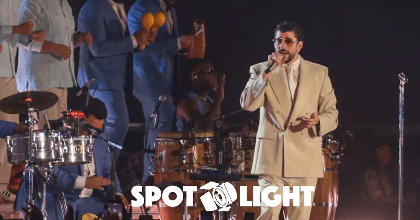 Bad Bunny emergió del suelo del escenarioen un flashazo; vestido a lo Héctor Lavoe, con traje beige y lentes de mafioso. La ovación rompió cualquier termómetro y absorto ante las masas, el cantante se reservó un buen tiempo para contemplar el paisaje de admiradores desenfrenados por su presencia.