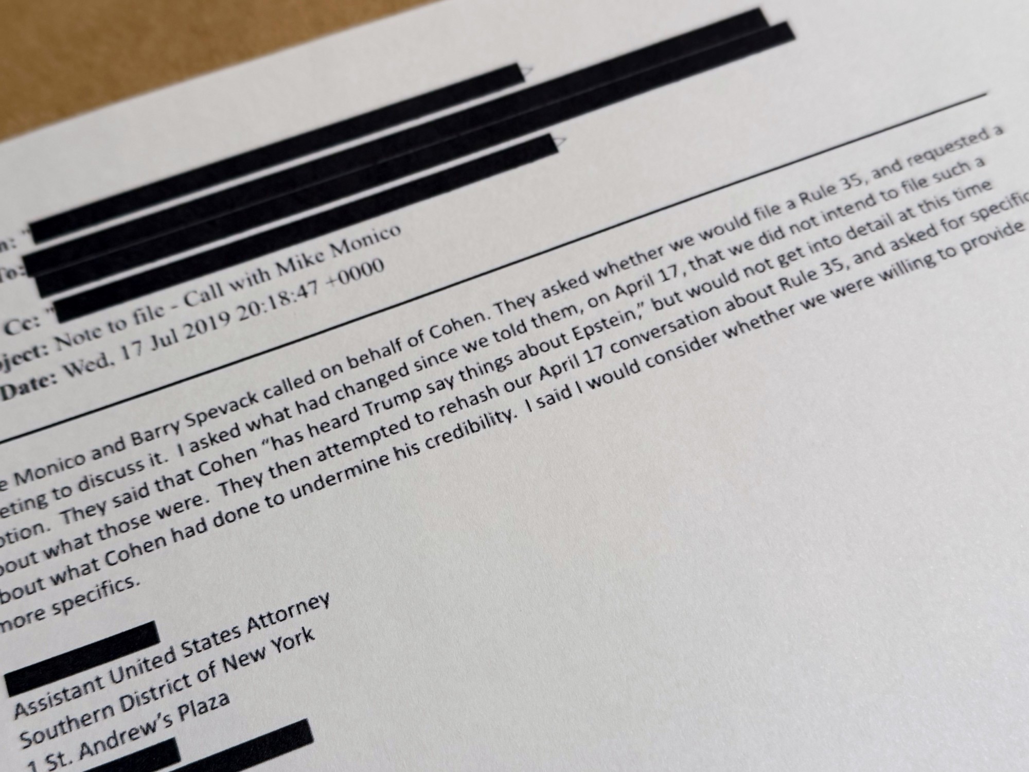 Una imagen muestra un aparato con un cajón abierto que contiene otras fotos. incluida al menos una de Donald Trump. Todd Blanche, el fiscal general adjunto, dijo que la imagen fue retirada no para proteger al presidente, sino por la preocupación de si esa imagen contenía a alguna víctima. La imagen fue restaurada posteriormente a la colección.
