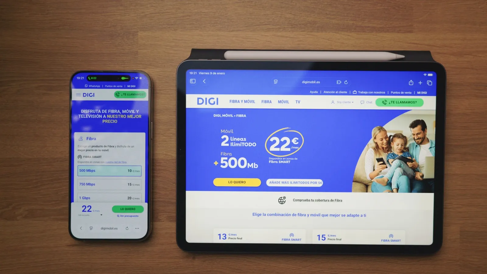 Un smartphone con la página web de Digi abierta / ADSLZone