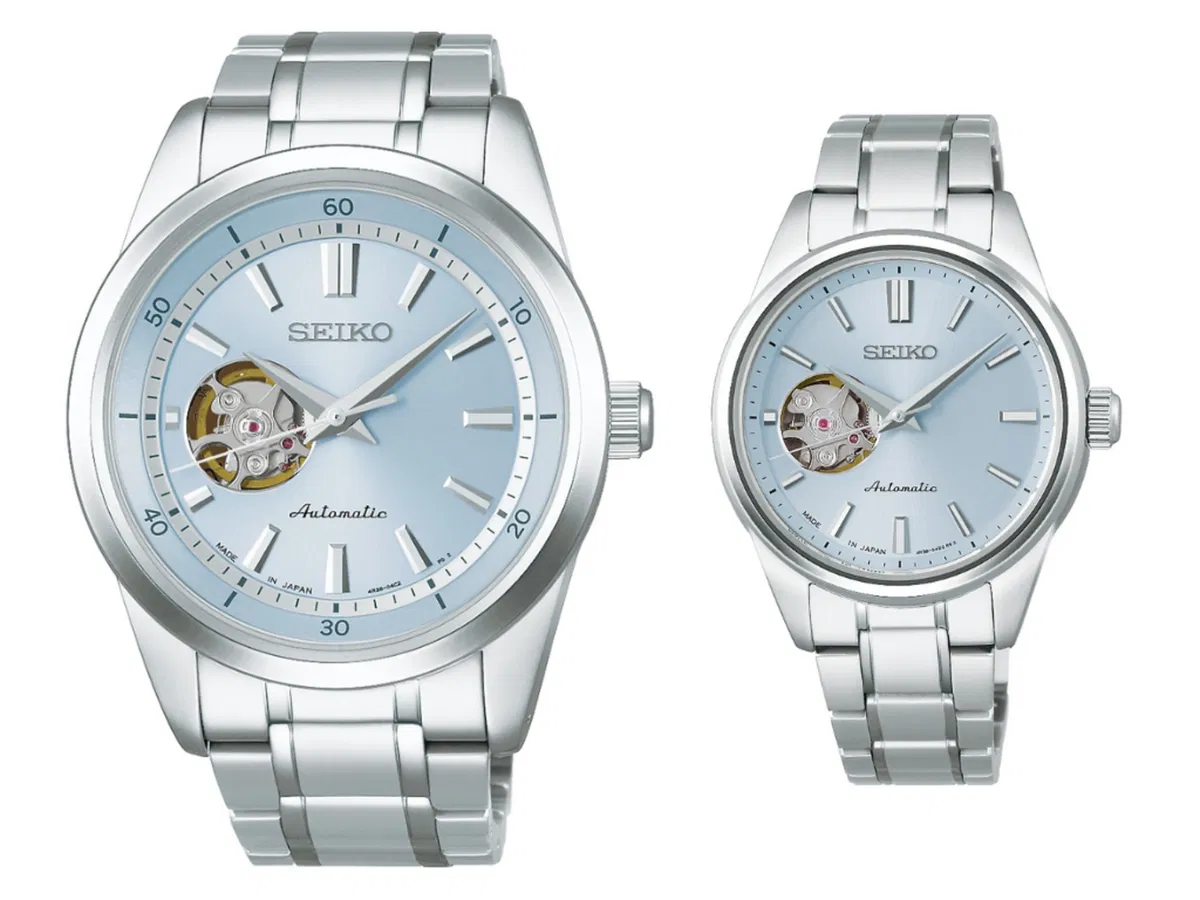 Seiko va a lanzar en la primavera de 2026 un par de joyas mecánicas para el mercado japonés, las referencias SCVE065 y SSDE025. Son piezas de edición limitada que entran por los ojos gracias a ese diseño “open heart”, que básicamente es una ventana a las 9 en punto que te deja ver cómo tarde el volante del reloj en pleno funcionamiento. Es ese tipo de detalle que hace que te quedes embobado mirando la muñeca, sobre todo con ese tono azul claro de la esfera que queda de lujo con el brazalete de acero.
